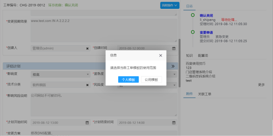 將標(biāo)準(zhǔn)變更定制為模板調(diào)用,可在創(chuàng)建變更時(shí)調(diào)用模板快速創(chuàng)建變更