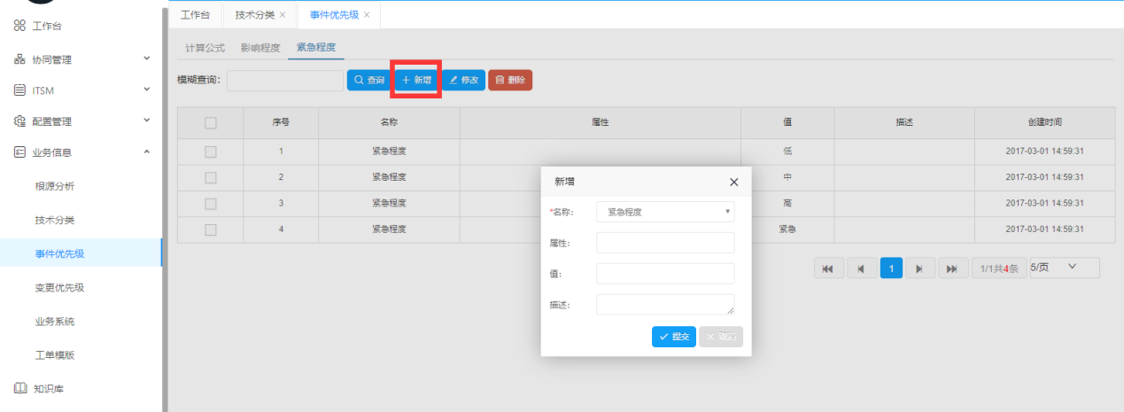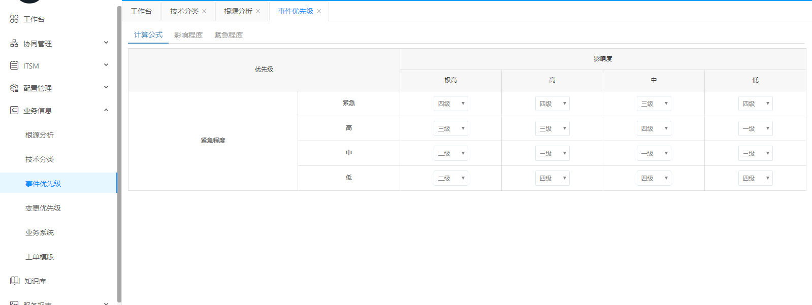事件優先級,表明了事件的優先程度,包括緊急、高、中、低等,并各有相對應的處理時效。