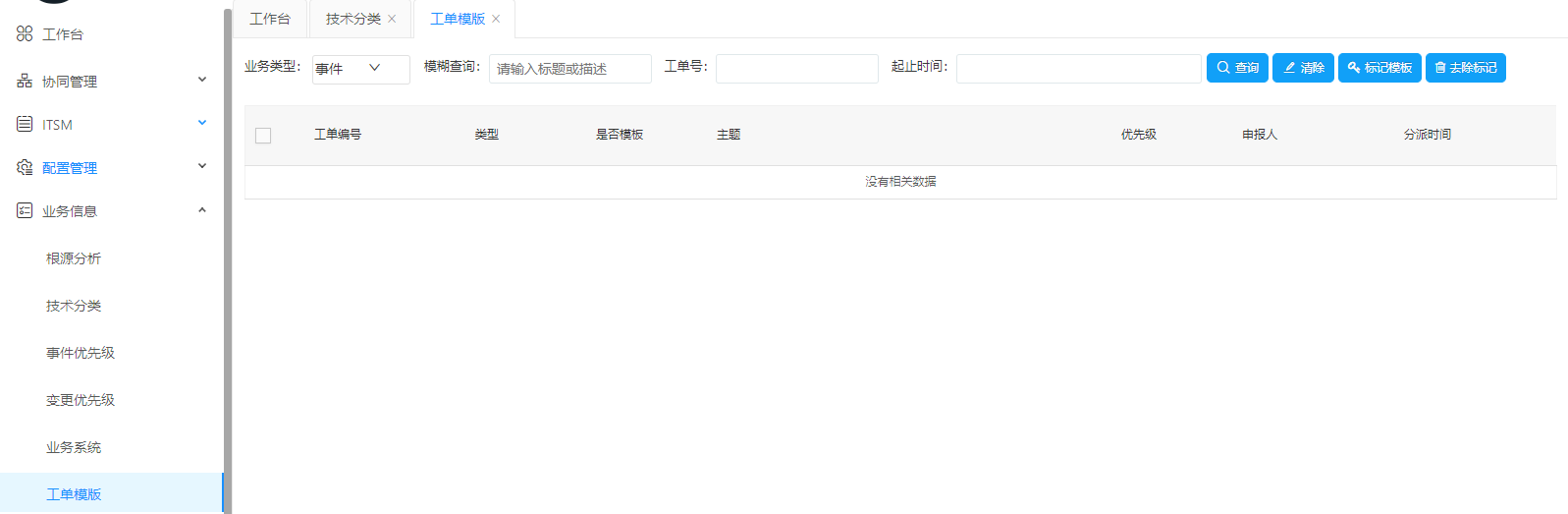 主要是為用戶報單設置的快速模版格式,可在用戶報單填寫內容時快速導入。有了模版的使用,大大提高了一線用戶報障的效率,同時,也使得工單規范格式,工程師處理起來可以一目了然??焖偬幚恚焖訇P單。急速解決問題。