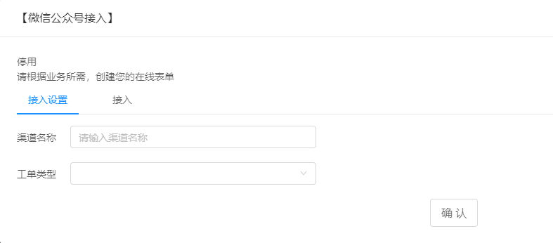 選擇微信公眾號組件,按需填寫渠道名稱,工單類型等,按確定生成渠道。