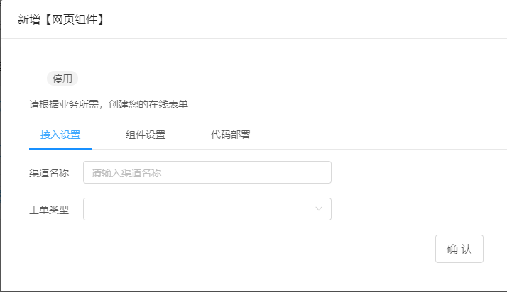 選擇網頁組件,按需填寫渠道名稱,工單類型等,按確定生成渠道。