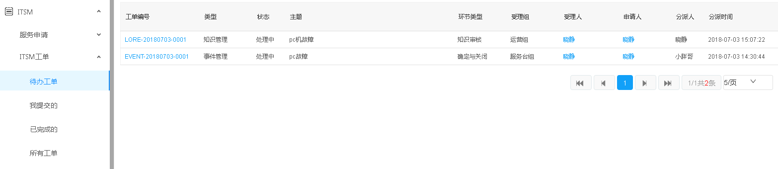 點(diǎn)擊流程下一步,工單就會(huì)交付到處理人的待辦工單中
