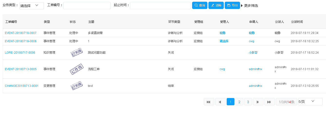 該公司所有的流程工單都會(huì)在此界面出現(xiàn)