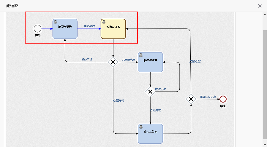若您對(duì)流程不是很了解的話,可以點(diǎn)擊流程圖按鈕,查看工單進(jìn)行到哪一個(gè)節(jié)點(diǎn).您也可以參照流程圖進(jìn)行下一個(gè)節(jié)點(diǎn)