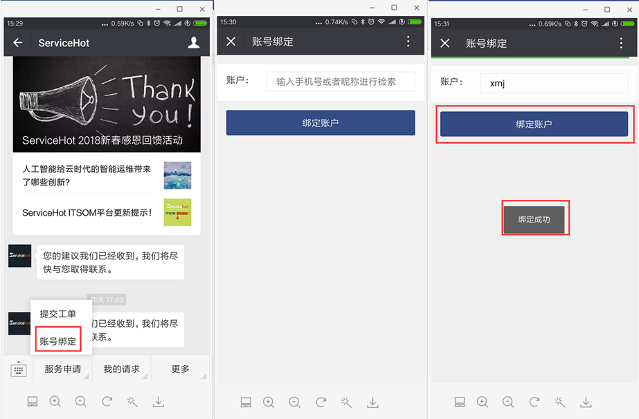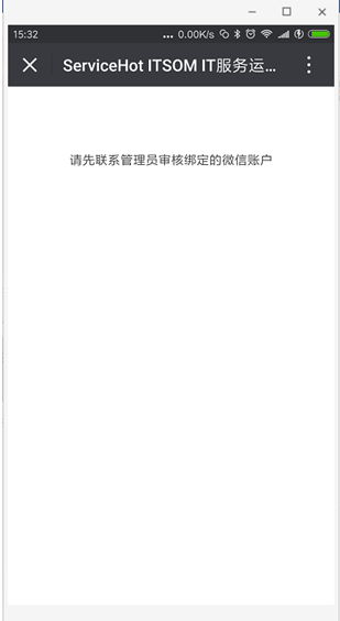 關注自己公司的微信公眾號后,需要進行賬號綁定及管理員審核,如下圖所示: