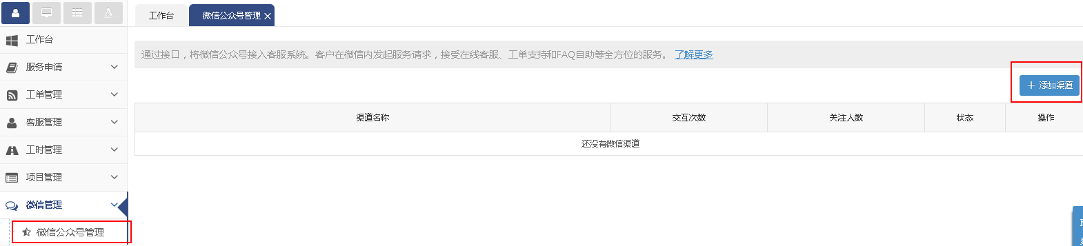 點擊“添加渠道”,進入添加微信渠道頁面,如下圖