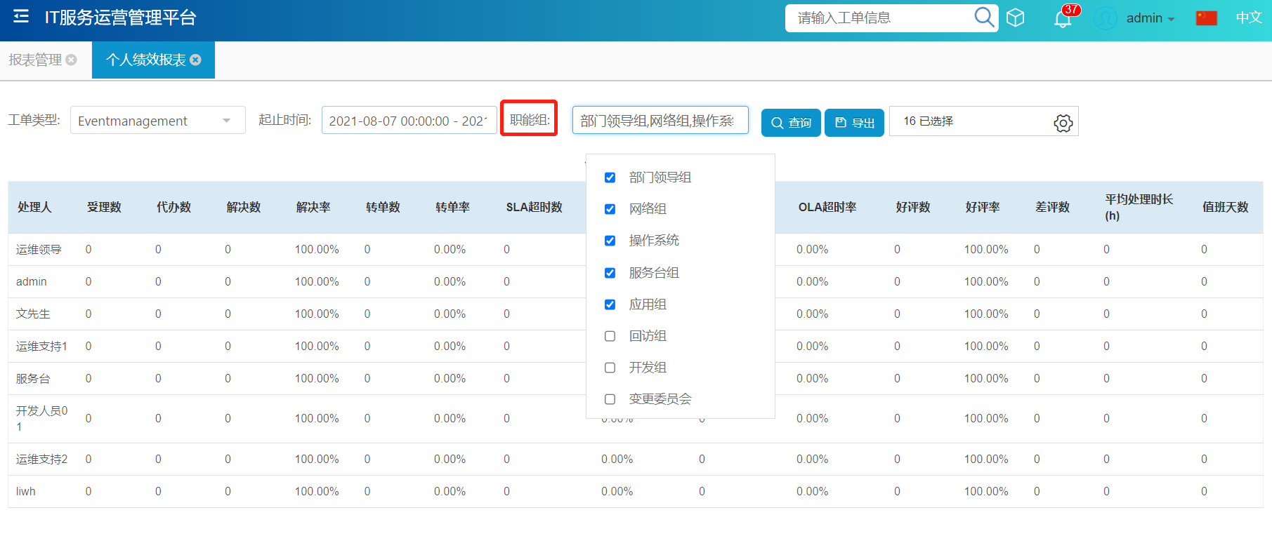 3、優(yōu)化:個(gè)人績效報(bào)表,增加“職能組”篩選條件