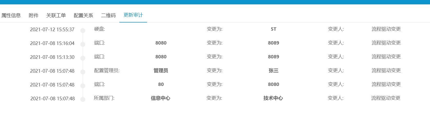 變更管理流程中:可在流程執(zhí)行中,自動(dòng)對(duì)需要修改的資產(chǎn)屬性進(jìn)行設(shè)定變更,到指定流程介素環(huán)節(jié)后,相應(yīng)資產(chǎn)屬性隨流程自動(dòng)同步變更。無需單獨(dú)再去資產(chǎn)配置中變更。隨流程驅(qū)動(dòng)變更。