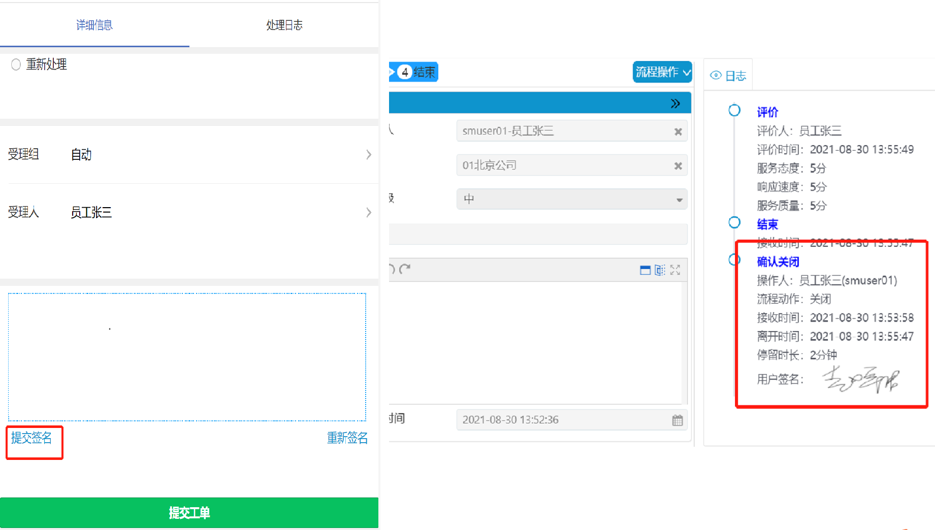 在用戶或管理需要簽字確認(rèn)的環(huán)節(jié),流程增加了移動(dòng)端簽名的功能。
