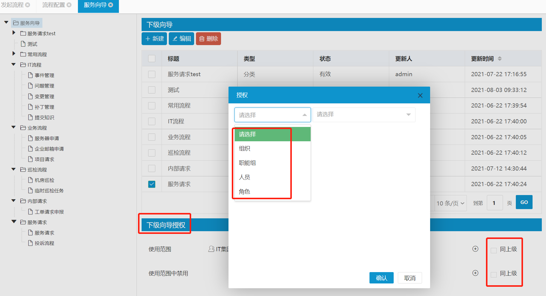 2:服務(wù)向?qū)Х诸惡头?wù),可直接授權(quán),并且單個(gè)條目增加授權(quán):同上級(jí)。 無需再進(jìn)行服務(wù)組合授權(quán)。