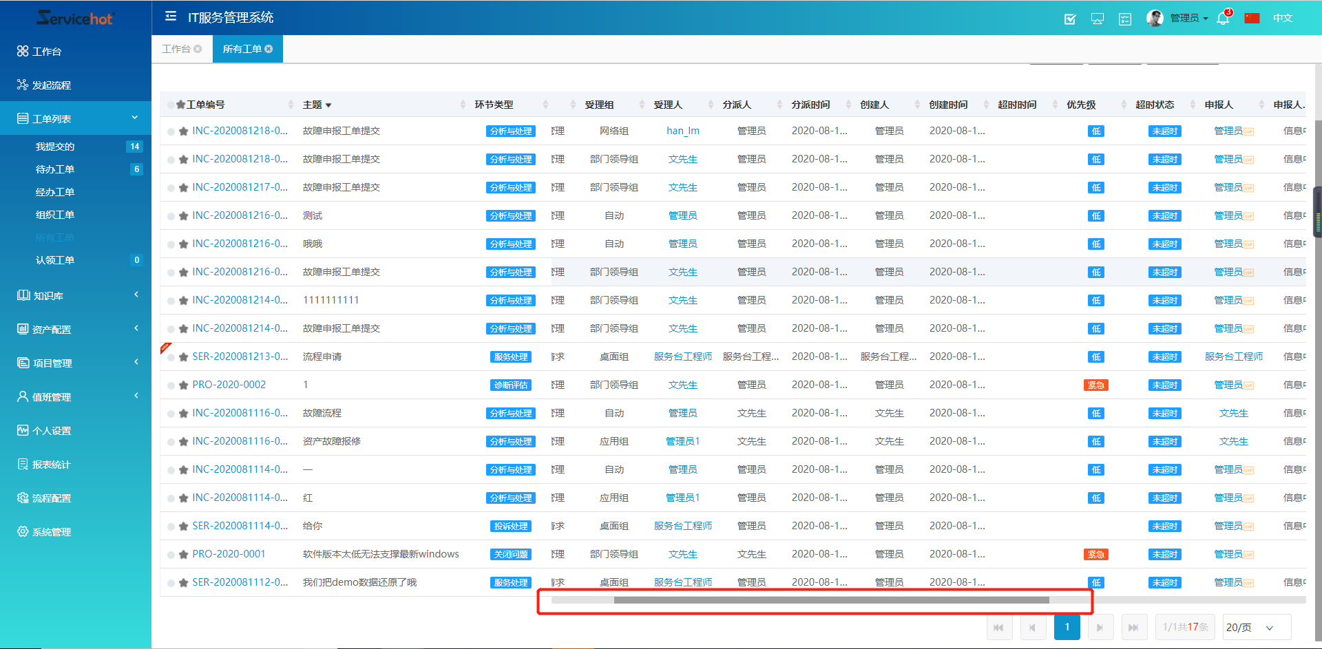 工單展示頁面增加滾動條,系統鎖定工單編號、主體及環節類型,用戶可通過滾動條查看每條工單的其他全部內容。