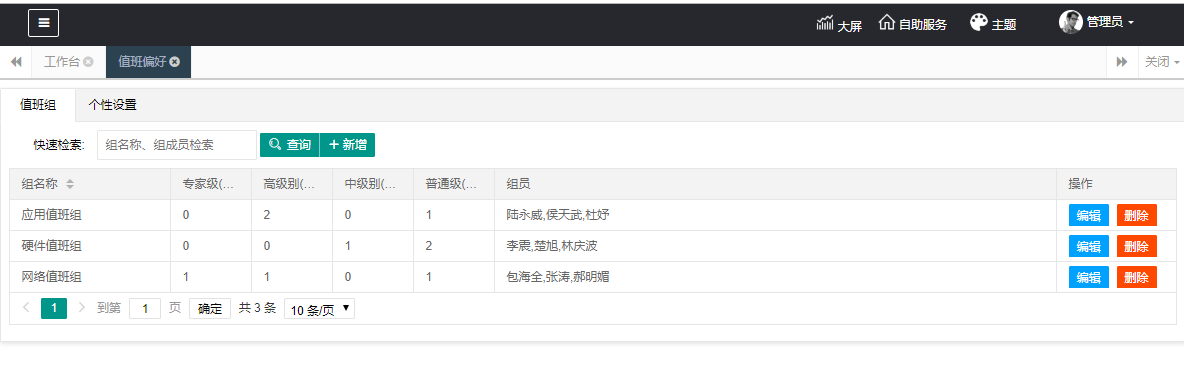 值班管理效果圖一:排班分組管理