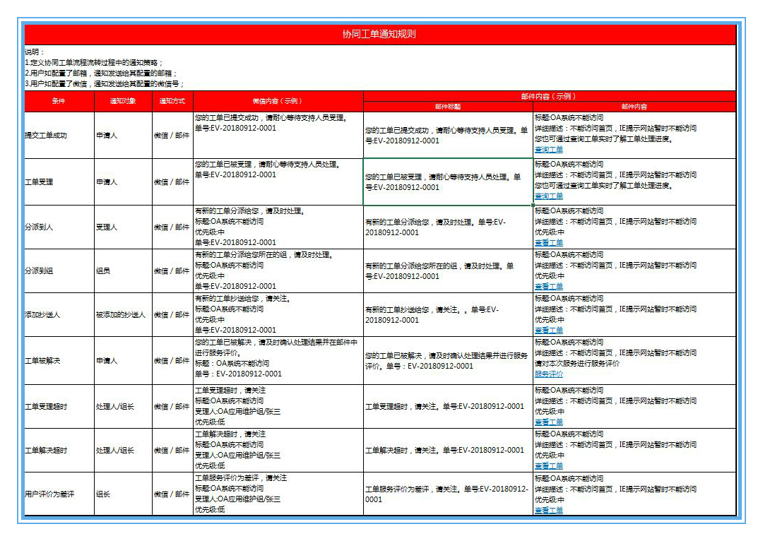 3.新增:頁面引擎、協(xié)同工單通知規(guī)則、協(xié)同工單滿意度報(bào)表、微信小程序功能。