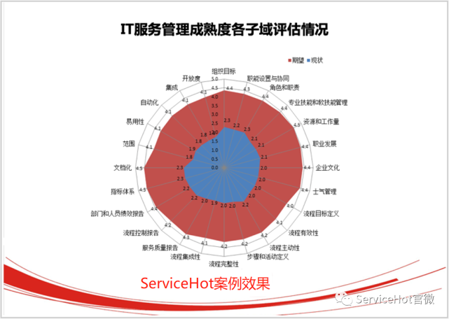 企業(yè)根據(jù)分析現(xiàn)狀和目標之間的差距,然后找出那些實施效果最為明顯的流程。根據(jù)ServiceHot多年實踐經(jīng)驗 ,服務請求流程、故障流程、變更流程可作為最有利的起點,因為痛點指數(shù)高,且使用頻率高。