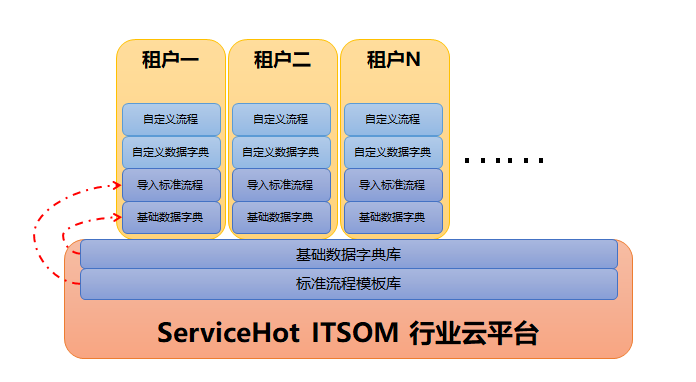 SaaS平臺(tái)及行業(yè)云平臺(tái)管理者,可以通過(guò)平臺(tái)后臺(tái)統(tǒng)一管理系統(tǒng)內(nèi)置的數(shù)據(jù)字典,租戶自動(dòng)同步默認(rèn)字段;ServiceHot產(chǎn)品適用于各行各業(yè)的IT部門使用,雖然各行各業(yè)的流程大同小異,但是流程各環(huán)節(jié)的屬性和字段卻大相徑庭。因此,企業(yè)在上線行業(yè)云平臺(tái)時(shí),需要根據(jù)自己行業(yè)重新定義平臺(tái)的基礎(chǔ)數(shù)據(jù)字典,使得平臺(tái)下的租戶開(kāi)箱即用,無(wú)需逐一維護(hù)。