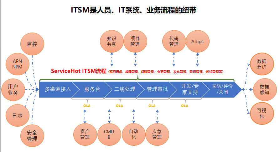 ServiceHot ITSOM產(chǎn)品升級(jí)之后的API增加到30多個(gè),可全面覆蓋產(chǎn)品組織、人員、服務(wù)臺(tái)、各類流程、知識(shí)、公告、通知等幾大功能模塊,并且可通過(guò)接口對(duì)全流程進(jìn)行驅(qū)動(dòng)。在企業(yè)IT常用的管理工具中,ITSOM系統(tǒng)是具有極其特殊的地位的,為何?