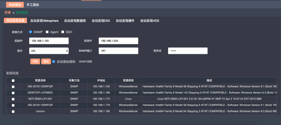 資產檔案管理數據不僅僅需要分類明確,對于每類資產信息的展現也需要深入全面,運維監控系統提供自動發現配置信息功能,可以發現絕大部分的資產配置信息,包括網絡設備、服務器、操作系統、PC機等。