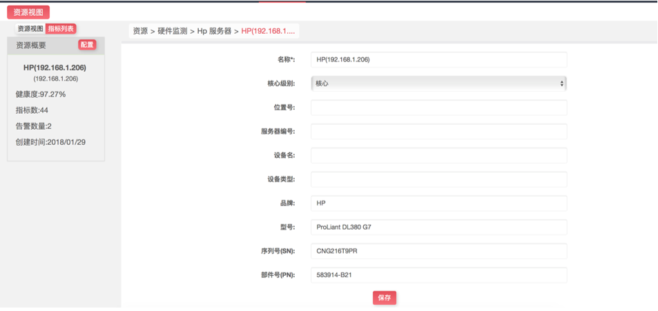 對于X86服務器,運維監控系統能夠自動采集到服務器的品牌、型號、SN、PN等資產配置信息,并且支持和CMDB對接,實現配置信息同步。