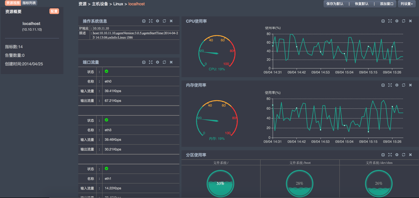 對各種操作系統(Windows、Linux、Solaris、HP-UX、AIX、中標麒麟、浪潮天梭K1)基本性能指標的監測。如 CPU 性能相關參數,系統邏輯及物理磁盤性能相關管理參數,系統內存性能相關管理參數。對基礎應用服務監測。可以監測的指標有:HTTP/HTTPS,SMTP/ POP3,FTP,DNS服務,DHCP服務,LDAP。