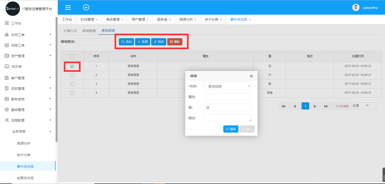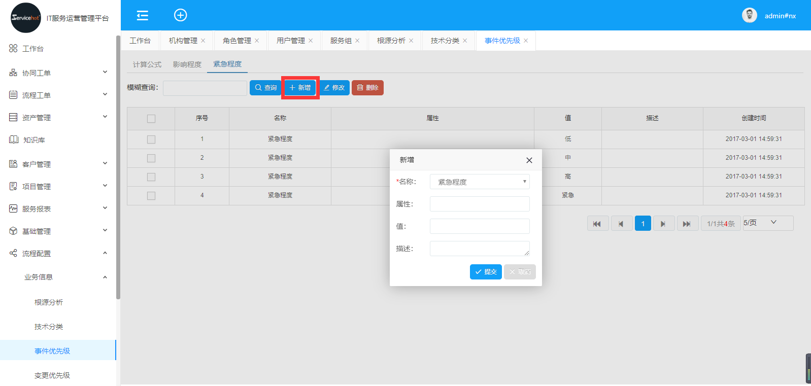 新增數(shù)據(jù),設(shè)置參數(shù)值,定義優(yōu)先級(jí)的高中低,點(diǎn)擊提交;