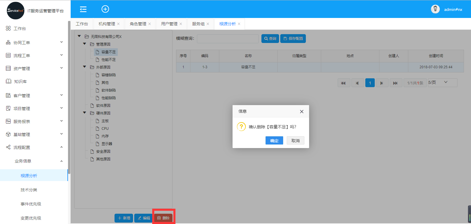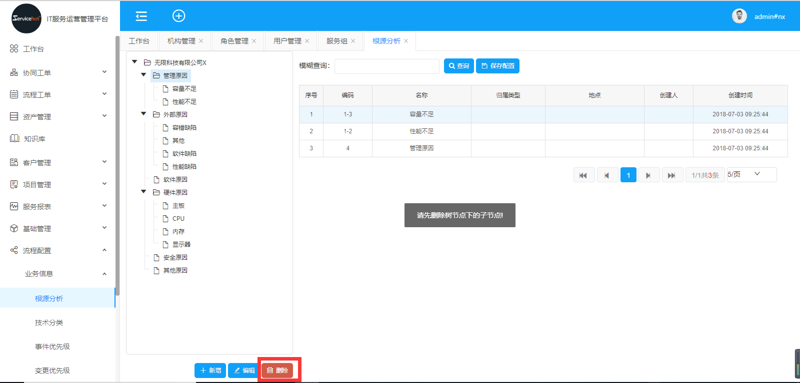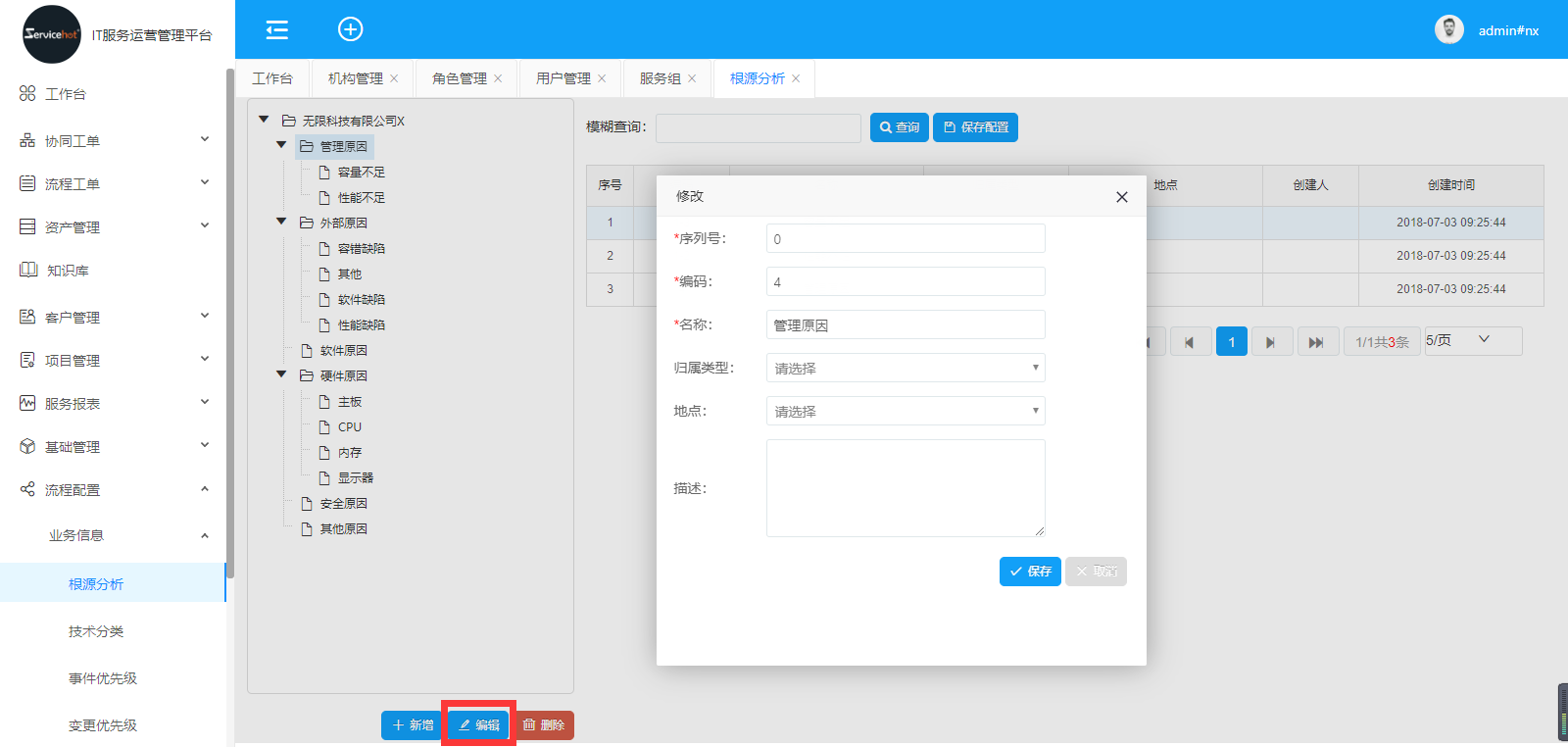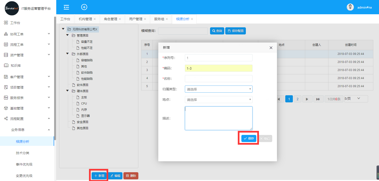 選擇「流程配置」>>「業(yè)務(wù)信息」>>「根源分析」進(jìn)入如下圖新增根源分析界面;