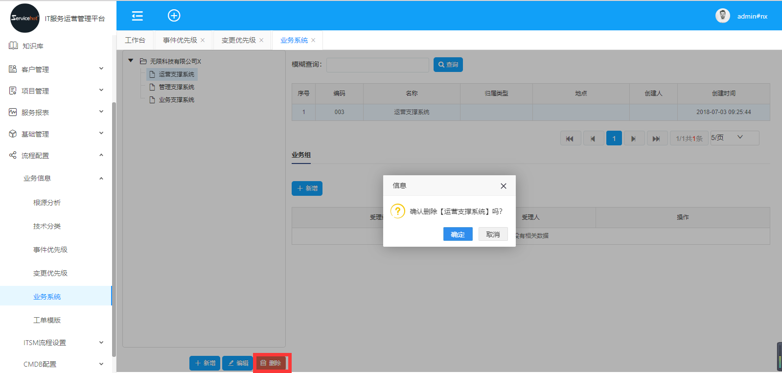 刪除業(yè)務(wù)系統(tǒng)