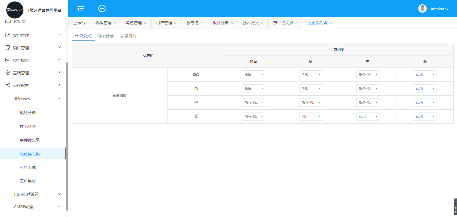 選擇「業(yè)務(wù)信息」>>「變更優(yōu)先級(jí)」進(jìn)入如下圖計(jì)算公式設(shè)置界面;