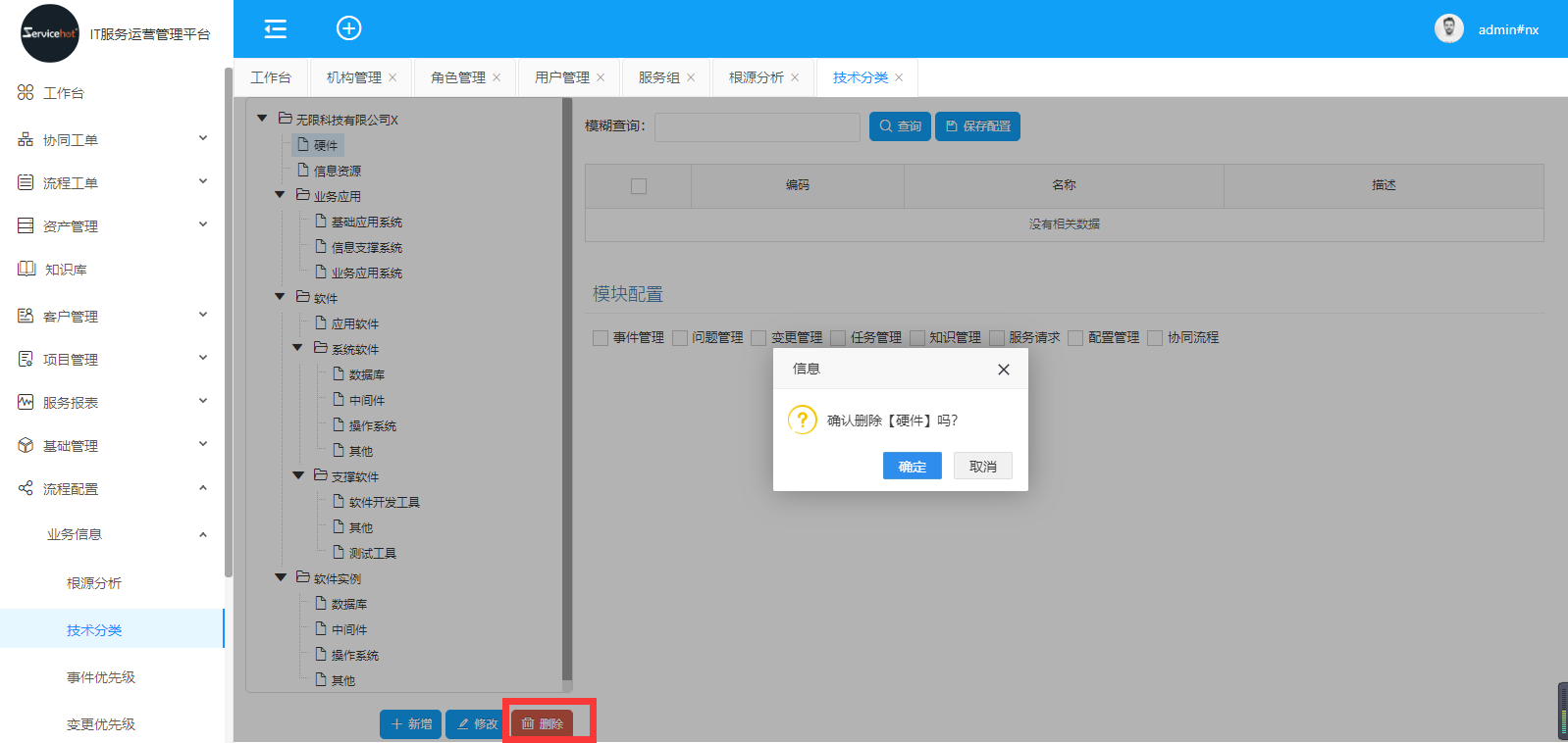 選擇數(shù)據(jù),點(diǎn)擊下方的刪除按鈕,確認(rèn)刪除即可完成操作。(刪除操作一定要先選中需要?jiǎng)h除的子節(jié)點(diǎn),如圖,完成刪除后點(diǎn)確認(rèn))
