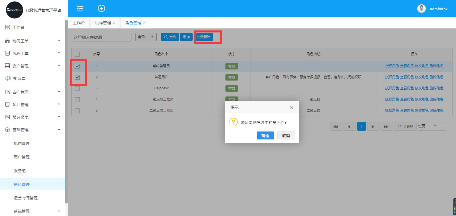 選擇需要刪除的數據,可以單選或者多選,點擊“批量刪除角色”按鈕即可。