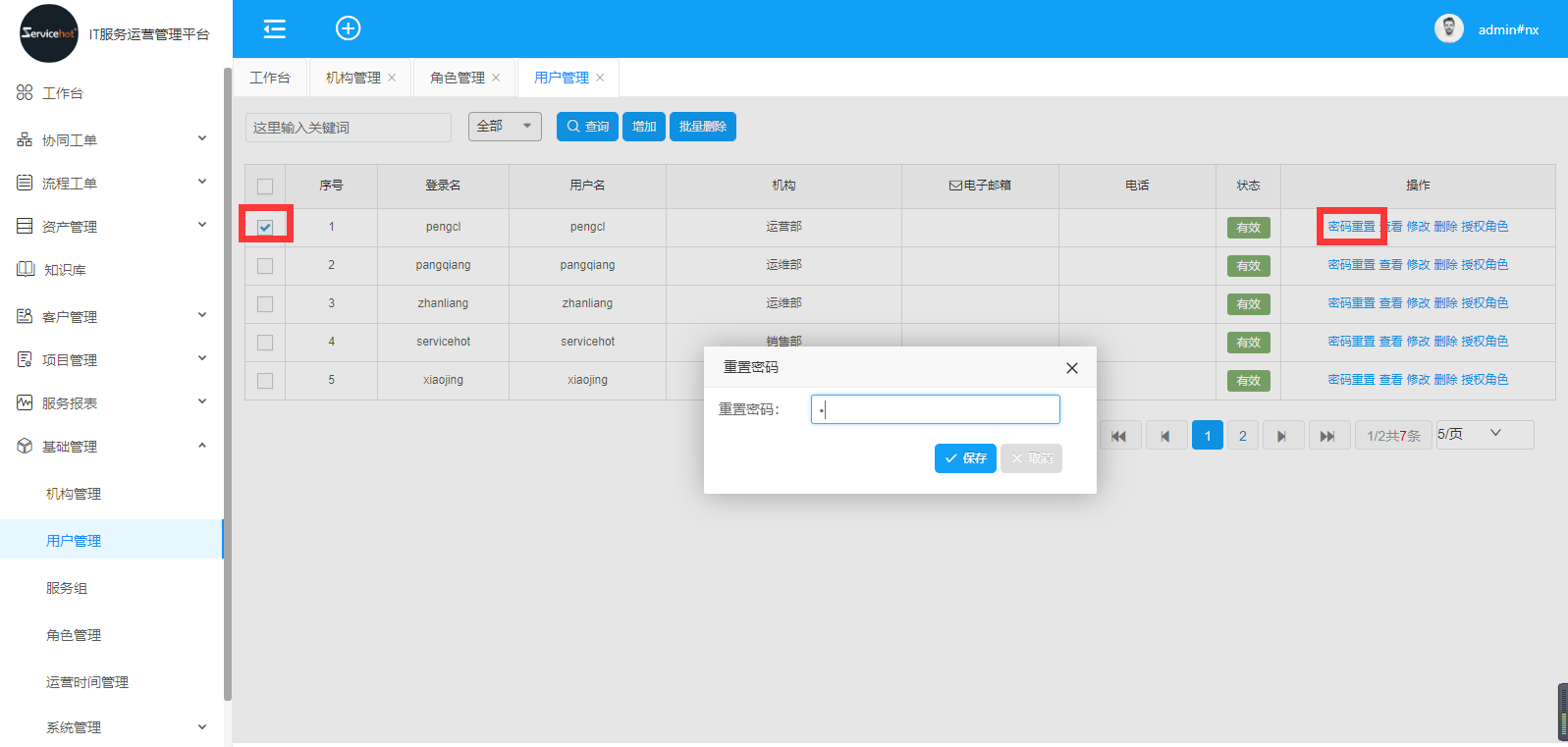 選擇「基礎管理」>>「用戶管理」進入如下圖新增用戶管理界面;