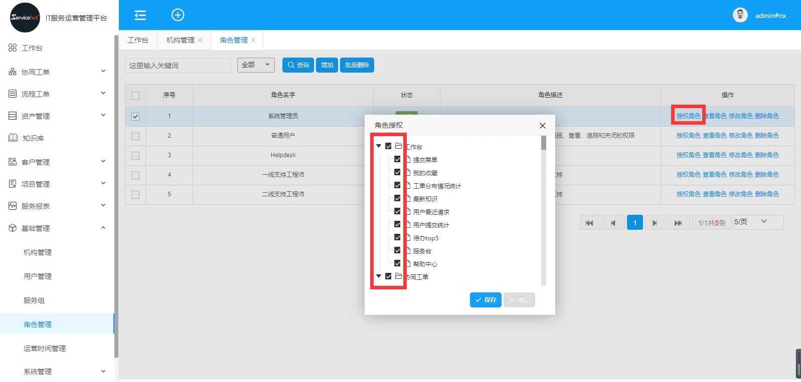 選中記錄,點擊右邊的授權小按鈕,對角色進行授權配置。
